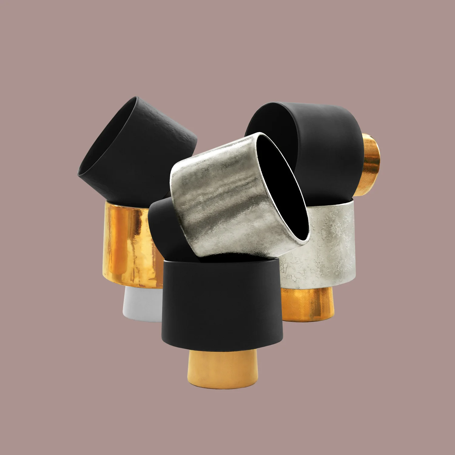 GLACIER • goblets • cast black or dove grey china • carat gold or platinum enamel