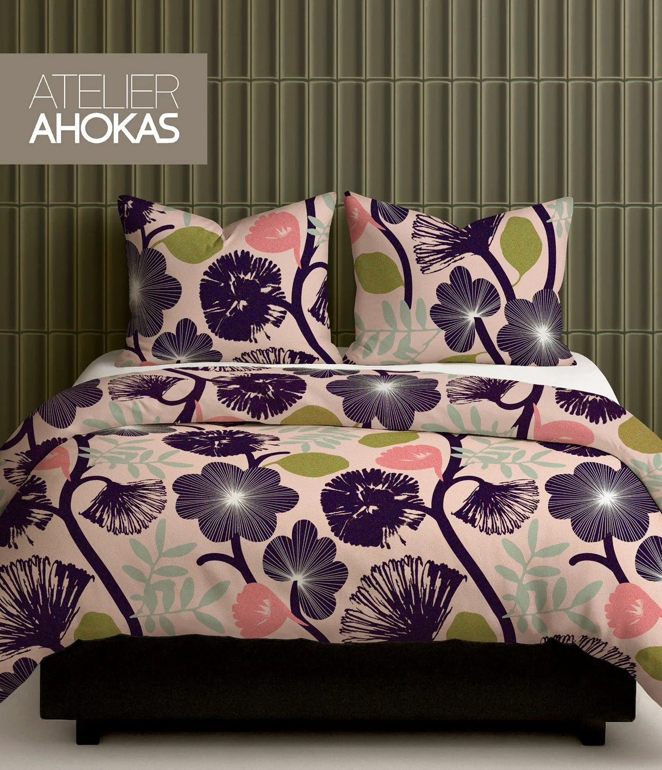 New pattern designs NECTAR and SACRED MOUNTAINS created by Atelier Ahokas for the Japanese brand Garb Casa. NECTAR is available for purchase by the metre in four colourways, while SACRED MOUNTAINS comes in three colourways. Both designs are also available as bed linens in two colourways, bringing nature-inspired beauty to your home.